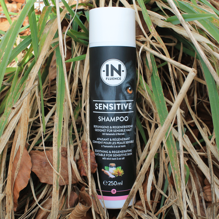 SENSITIVE SHAMPOO von IN-FLUENCE, Hundeshampoo für Sensible Haut, dass mit Hamamelis und Meersalz die Haut regeneriert und beruhigt.